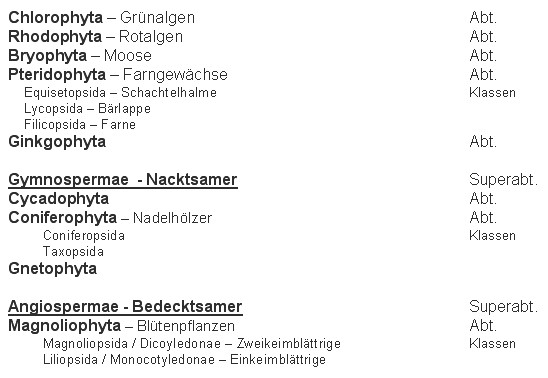 Das Reich der Pflanzen kann in folgende Abteilungen unterteilt werden: